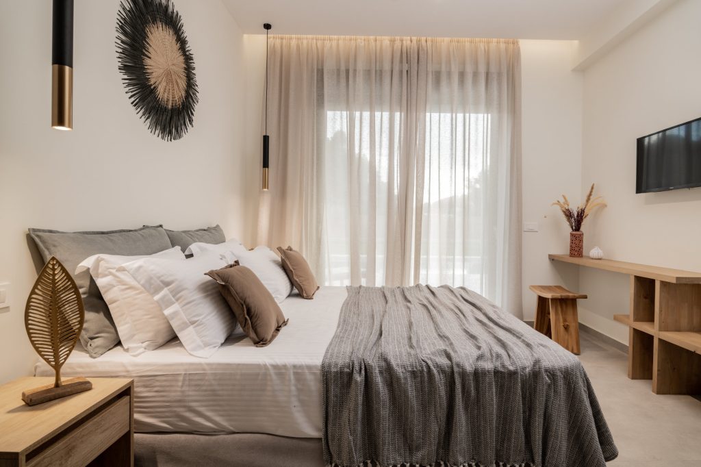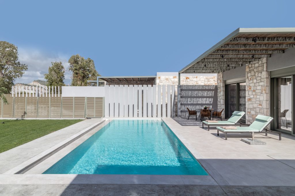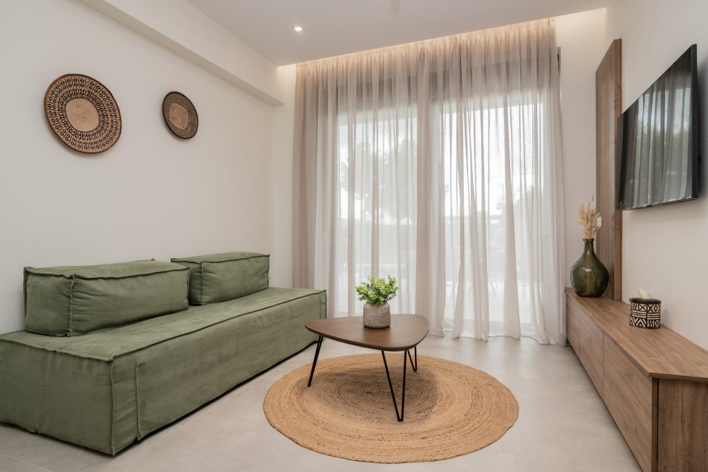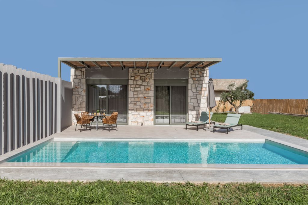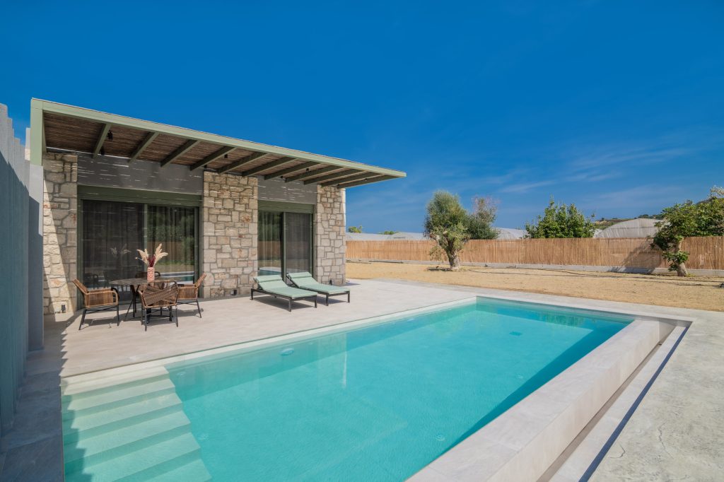 Olea Villa, where tranquility meets luxury in a haven designed for your ultimate relaxation. Olea Villa welcomes up to 4 guests, offering a spacious bedroom adorned with a sumptuous king-size bed and a cozy living room featuring a double sofa bed, ensuring a comfortable stay for all.
